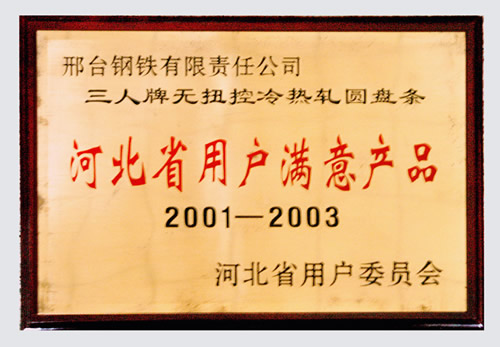 三人牌無(wú)扭控冷熱軋圓盤條被評(píng)為河北省用戶滿意產(chǎn)品