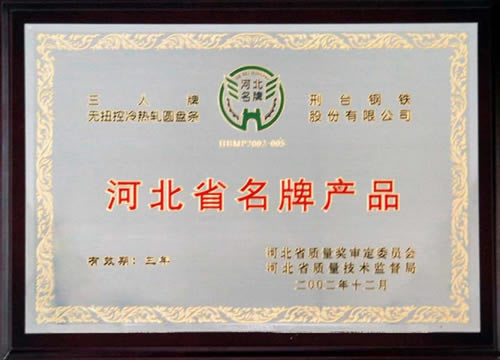 三人牌熱軋圓盤(pán)條獲河北省優(yōu)質(zhì)產(chǎn)品(工業(yè)類)
