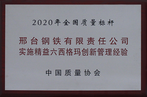 2020年10月21日,由中國質(zhì)量協(xié)會主辦,山西省工業(yè)和信息化廳、太原市人民政府承辦的“2020年全國質(zhì)量標(biāo)桿山西行交流活動”在山西省太原市舉辦,在本次交流活動上邢鋼《實(shí)施精益六西格瑪創(chuàng)新管理經(jīng)驗(yàn)》被授予“2020年全國質(zhì)量標(biāo)桿”。