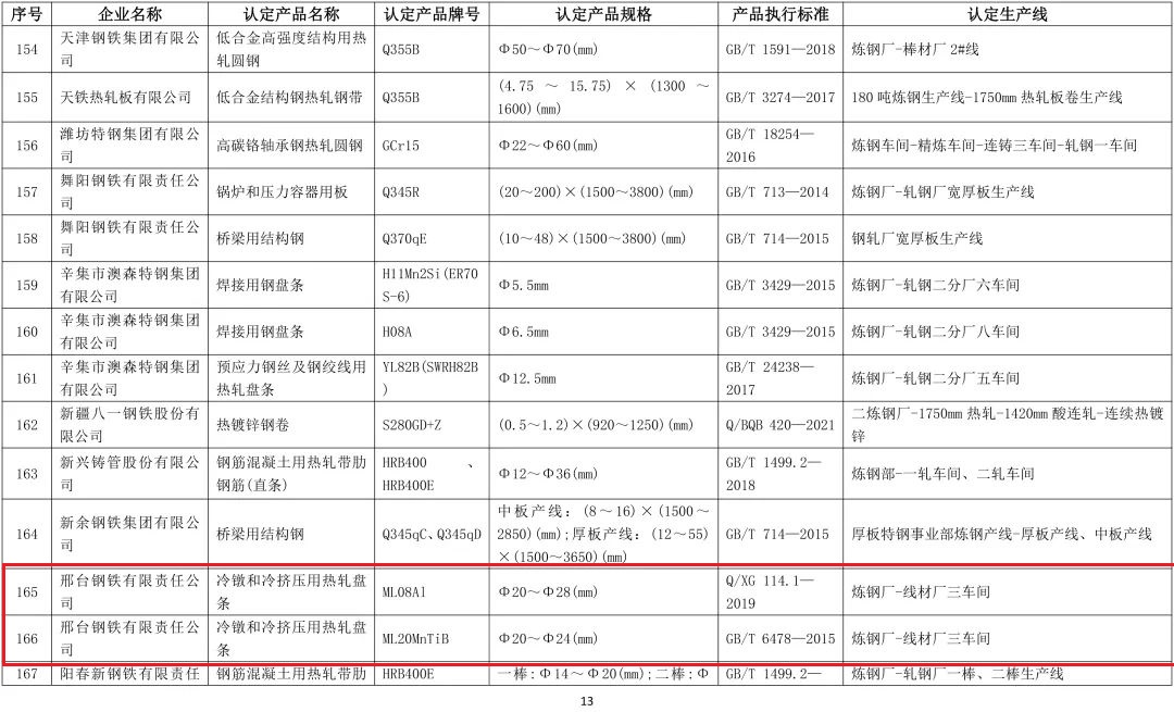 2024年1月24日,中國鋼鐵工業(yè)協(xié)會發(fā)布2023年度冶金產(chǎn)品實物質(zhì)量品牌培育產(chǎn)品名單公告,邢臺鋼鐵申報的《冷鐓和冷擠壓用熱軋盤條ML08Al》和《冷鐓和冷擠壓用熱軋盤條ML20MnTiB》獲冶金產(chǎn)品實物質(zhì)量品牌培育“金杯優(yōu)質(zhì)產(chǎn)品”。 至此,在合金冷墩鋼、簾線鋼、軸承鋼、焊接用鋼、預(yù)應(yīng)力、易切削鋼、耐候鋼種等應(yīng)用領(lǐng)域,邢鋼…