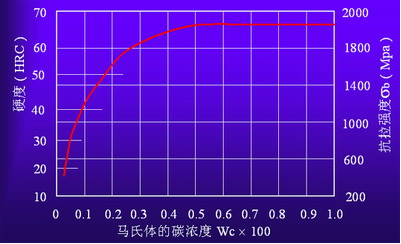馬氏體性能:馬氏體的強(qiáng)度和硬度主要取決于馬氏體的含碳量。隨著馬氏體含碳量的提高,其強(qiáng)度與硬度也隨之提高。低碳馬氏體具有良好的強(qiáng)度及一定的韌性;高碳馬氏體硬度高、脆性大。