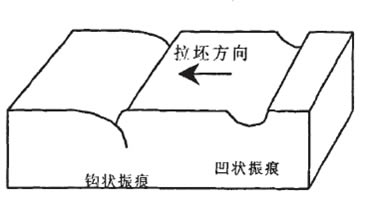 通過(guò)對(duì)不同連鑄條件下鑄坯表面撮痘進(jìn)行金相分析,最常見(jiàn)的振痕形態(tài)基本上可分為兩種:凹陷狀振痕和鉤狀振痕,其典型的形貌如下圖所示。