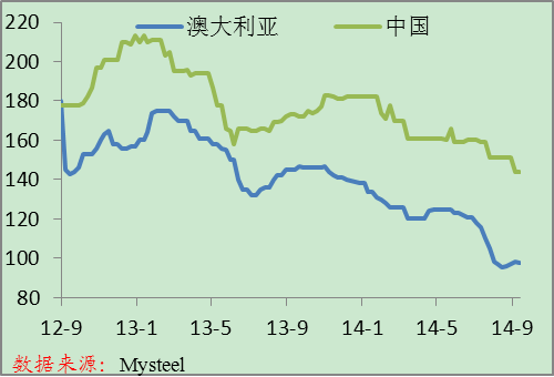 中國和日本鋼材庫存 澳大利亞主焦煤出口價和中國焦煤市場價