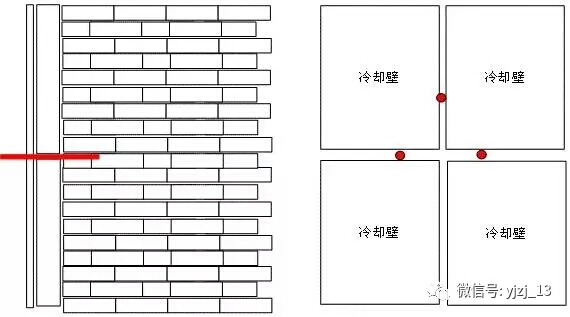 由于砌筑或生產(chǎn)過程中的熱膨脹現(xiàn)象,會(huì)在爐皮與冷卻壁間以及冷卻壁與爐缸炭磚之間產(chǎn)生氣塞,尤其在冷卻壁與炭磚之間的氣塞,會(huì)嚴(yán)重降低冷卻效率,致使炭磚熱面外擴(kuò),熔蝕加快。換角度說:只有消除氣塞,冷卻系統(tǒng)才會(huì)發(fā)生作用,將熱量傳遞出來,利于爐缸內(nèi)形成渣鐵保護(hù)層,促進(jìn)爐缸的安全長壽。