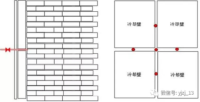 (3)對(duì)鐵口下方熱流強(qiáng)度較高的冷卻壁預(yù)留高壓工業(yè)水支管(1.6MPa)。