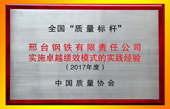 In September 2017, according to the news from MIIT (Ministry of Industry and Information Technology) and CAQ (China Association for Quality), "Practical Experience in Implementing the Excellent Performance Mode" declared by Xingtai Steel was voted as "Quality Benchmarking in 2017" and recommended as regular practice experience.