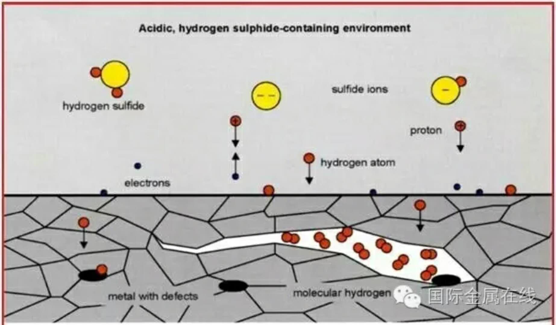 如鋼在含氫量較高的環(huán)境中,如水、酸、氫氣中時(shí),氫通過(guò)吸附在鋼鐵表而擴(kuò)散,造成鋼變脆。同時(shí)氫分壓對(duì)氫裂紋擴(kuò)展速度有明顯的影響,提高氫氣壓力會(huì)增加氫脆敏感性。