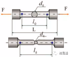 試件拉斷后,彈性變形消失,但塑性變形仍保留下來。工程上用試件拉斷后遺留下來的變形表示材料的塑性指標(biāo)。