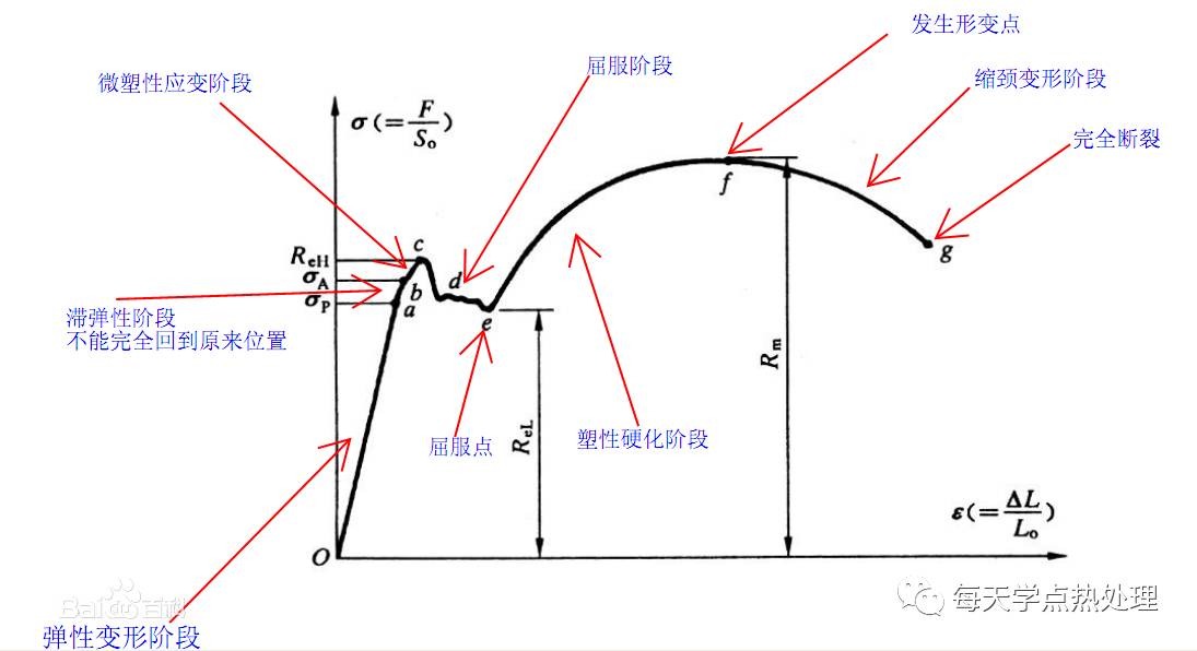 當(dāng)應(yīng)力超過彈性極限后,進入屈服階段后,變形增加較快,此時除了產(chǎn)生彈性變形外,還產(chǎn)生部分塑性變形。當(dāng)應(yīng)力達到b點后,塑性應(yīng)變急劇增加,應(yīng)力應(yīng)變出現(xiàn)微小波動,這種現(xiàn)象稱為屈服。這一階段的最大、最小應(yīng)力分別稱為上屈服點和下屈服點。由于下屈服點的數(shù)值較為穩(wěn)定,因此以它作為材料抗力的指標(biāo),稱為屈服點或屈服強度(ReL或Rp0.2)。