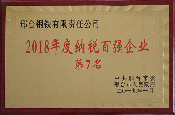 邢鋼入圍邢臺市 2018年度納稅百強(qiáng)企業(yè)榜