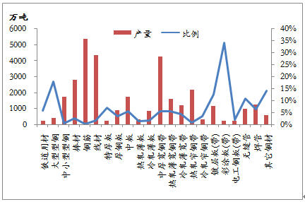 1-5月份,我國(guó)共出口鋼材1791.7萬(wàn)噸,棒線材、角型材、板材、鋼管、鐵道用材和其它用材分別占11.4%、5.9%、60.1%、15.4%、1.0%和6.2%,板材所占份額最大,棒線材和鋼管次之。就前5個(gè)月出口量而言,退稅取消的鋼材品種出口數(shù)量為703.3萬(wàn)噸,占1-5月份鋼材出口總量的39.3%。雖然鋼材總出口量只占到國(guó)內(nèi)產(chǎn)量的5.1%,但仍有部分品種出口占產(chǎn)量的比例較大,對(duì)出口具有一定依賴性。鍍鋅板、熱軋板卷、中厚板和大型型鋼的出口數(shù)量占產(chǎn)量的比例較大,在出口稅率下調(diào)的情況下,國(guó)內(nèi)資源供應(yīng)的壓力將會(huì)明顯增大,從而影響到國(guó)內(nèi)價(jià)格的運(yùn)行。不過,在政策執(zhí)行日期之前,出口企業(yè)必定要加緊落實(shí)前期簽訂的合同,熱軋卷等品種的出口可能會(huì)加大,對(duì)國(guó)內(nèi)鋼材市場(chǎng)將是利好。