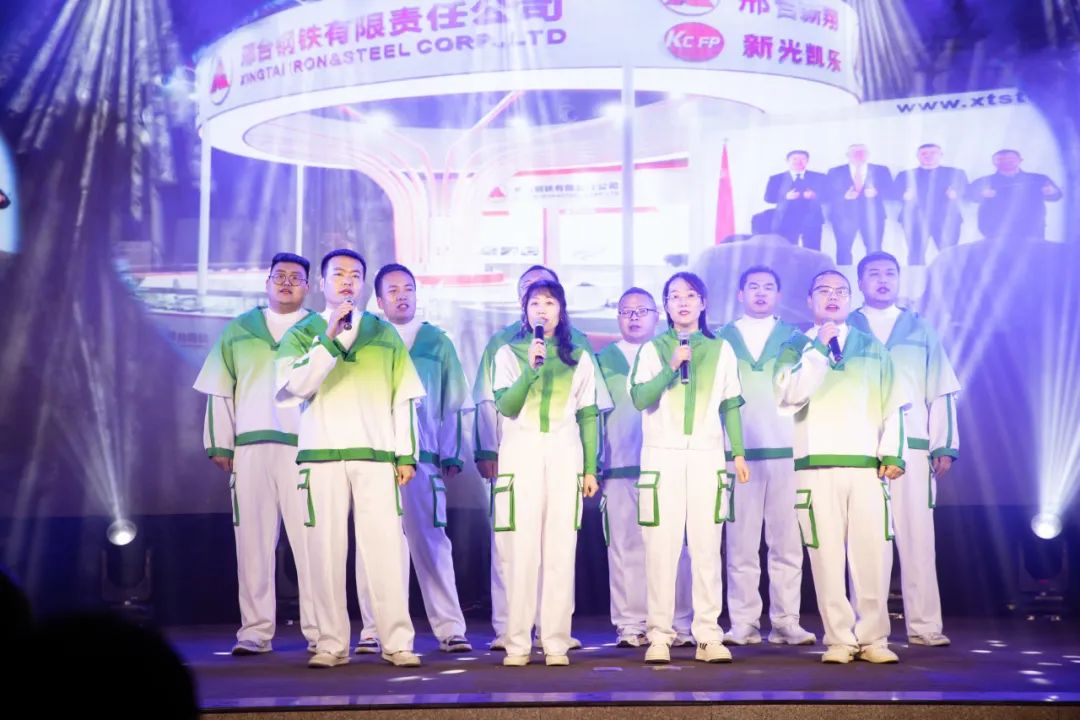 演出開(kāi)始前,由各二級(jí)單位錄制的《鋼鐵工人大拜年》視頻為聯(lián)歡會(huì)開(kāi)幕烘托出濃厚的節(jié)日喜慶氣氛。煉鐵廠王艷等的開(kāi)場(chǎng)舞《中國(guó)龍,舞起來(lái)》歡樂(lè)、動(dòng)感;儲(chǔ)運(yùn)中心侯伊坤的獨(dú)唱《風(fēng)吹麥浪》唯美、清新;新翔公司楊立興等的三句半表演《賀龍年》則輕松、詼諧;煉鐵廠劉士沛與新入職年輕人“以老帶新”的歌伴舞《時(shí)代號(hào)子——致敬邢鋼人》點(diǎn)燃起晚會(huì)現(xiàn)場(chǎng)觀眾的火熱激情。質(zhì)量控制部孫濤的薩克斯獨(dú)奏《she》、焦化廠申學(xué)軍的《戲曲串燒》、線材廠魏東的獨(dú)唱《兄弟干杯》、財(cái)務(wù)部楊佳薏的獨(dú)舞《星河嘆》、銷售公司田芳等的小合唱《不放棄》、煉鋼廠甄建軍、張康健的二重唱《可能》、動(dòng)力廠董巖、陳險(xiǎn)峰等的歌舞《最親的人》等節(jié)目繽紛呈現(xiàn),展示了邢鋼人多才多藝的別樣風(fēng)貌;煉鐵廠楊曉霞等的情景劇《歲月》以兩代人的視角,抒發(fā)了企業(yè)歷史變遷中不變的邢鋼人情懷;賈凌雪、陳燕、魏秋紅、李濟(jì)興聯(lián)袂表演的詩(shī)朗誦《沉香·甲子邢鋼》,回顧邢鋼65年跋涉歷程,寄語(yǔ)新邢鋼美好未來(lái);公司總經(jīng)理彭世丹等中高層領(lǐng)導(dǎo)的合唱《眾人劃槳開(kāi)大船》把整場(chǎng)聯(lián)歡會(huì)推向高潮,臺(tái)上歌聲鏗鏘,臺(tái)下掌聲相和,激發(fā)起邢鋼人“眾志成城創(chuàng)大業(yè),凝心聚力贏未來(lái)”的壯志豪情。聯(lián)歡會(huì)在《陽(yáng)光路上》的歌聲中落下帷幕,預(yù)示著新邢鋼的未來(lái)發(fā)展一路陽(yáng)光、前程錦繡!