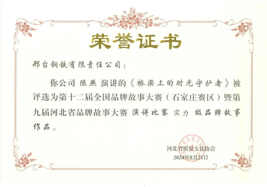 近日,由河北省質(zhì)量文化協(xié)會(huì)主辦的“第十二屆全國品牌故事大賽(石家莊賽區(qū))暨第九屆河北省品牌故事大賽”圓滿落下帷幕,邢鋼團(tuán)隊(duì)獲得多項(xiàng)殊榮。