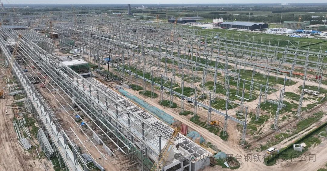 在大盤卷車間西側(cè)的不遠處,就是新邢鋼的心臟地帶——熔融還原爐!它可是新邢鋼的超級大明星,一路上我倆嘰嘰喳喳地探討過好多問題,全部都是關(guān)于它的建設(shè)情況。目前它還沒有落好,但我們有這樣的耐心,好事兒多磨嘛!看還原爐旁邊那些架起的鋼結(jié)構(gòu),也如同衛(wèi)士一般站在那里,我相信它們也和你一樣,熱切期待還原爐像啟明星一樣冉冉升起,照亮整個新邢鋼,引領(lǐng)行業(yè)未來!