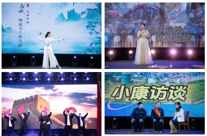 聯(lián)歡會在煉鐵廠震撼人心的《旗鼓飛揚(yáng)》的鼓聲中拉開帷幕,煉鋼廠、線材廠、新翔公司等二級單位、子公司錄制的《邢鋼一線員工賀新春》視頻為聯(lián)歡會烘托出濃厚的節(jié)日氣氛。碳資產(chǎn)管理部蘆麗華、線材廠張嬌的一首《紅彤彤的春天》讓觀眾如沐春風(fēng),銷售公司田芳、張可等的動感現(xiàn)代舞《奔跑吧,兄弟!》又讓觀眾切身感受到市場營銷人員的拼搏、奉獻(xiàn)。焦化廠申學(xué)軍、閆俊萍等的《難忘的焦?fàn)t情懷》,以情境小品的形式,再現(xiàn)2#焦?fàn)t安全停爐的場景,重溫焦化人站好最后一班崗的敬業(yè)情懷;線材廠魏東的《步步高》,唱出了邢鋼人的激情與豪情。技術(shù)中心蔡永賓等的詩朗誦《攜手邢鋼,追夢邢鋼》,以新一代邢鋼人的視角,張揚(yáng)青春,澎湃激情;煉鋼廠張康健、甄建軍的《想把我唱給你聽》、資金部趙嘉薏的舞蹈《青花瓷》、能源動力部董巖的《匆匆歲月細(xì)細(xì)地過》、新翔公司郭文杰、景雙輝等的歌伴舞《雪龍吟》展現(xiàn)了鋼鐵人的別樣情懷。晚會中的兩個(gè)小品——煉鐵廠的《考察》、煉鋼廠的《小康訪談》,在輕松詼諧的氣氛中,展示了廣大員工對新邢鋼美好未來的信心。邢鋼搬遷項(xiàng)目指揮部與綜合辦公室、線材廠帶來的詩朗誦《希冀,奮進(jìn),筑夢新邢鋼》,回顧了邢鋼搬遷項(xiàng)目的建設(shè)歷程,激勵(lì)全體員工以更加昂揚(yáng)的斗志、更加飽滿的激情,投身到各自的崗位上,讓新邢鋼的旗幟,永遠(yuǎn)在鋼鐵行業(yè)的巔峰飄揚(yáng)!