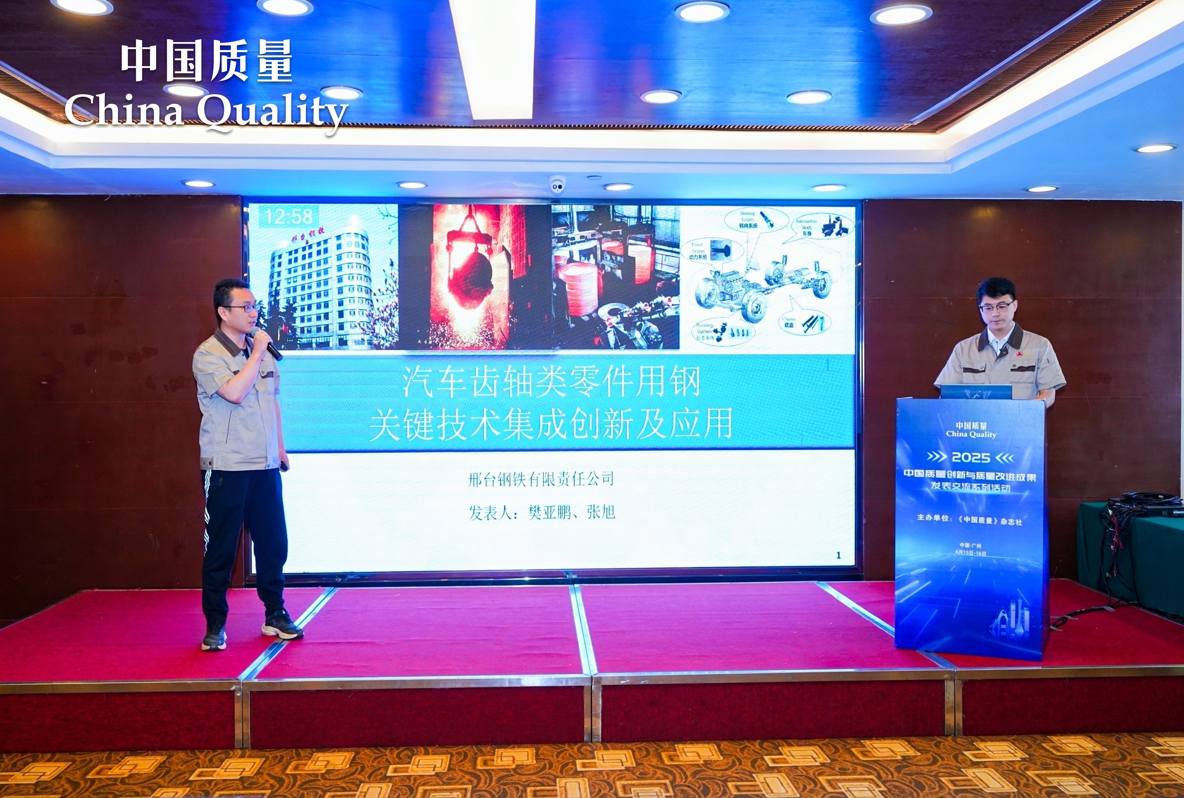 Recently, the "2025 China Quality Innovation and Quality Improvement Achievement Release and Exchange Series Activities" hosted by China Quality Magazine came to a successful conclusion in Guangzhou, Guangdong Province. The project "Integrated Innovation and Application of Key Technologies for Steel Used in Automotive Gear and Shaft Parts" declared by Xingtai Iron and Steel Co., Ltd. (hereinafter referred to as "Xinggang") stood out from many participating achievements with its remarkable innovation, practicality and demonstration, and won the highest "Demonstration Level" award. This is the third consecutive year that Xinggang has won the highest award in this selection activity, following the high-end cold heading steel quality research project in 2023 and the new energy vehicle steel technology innovation project in 2024.