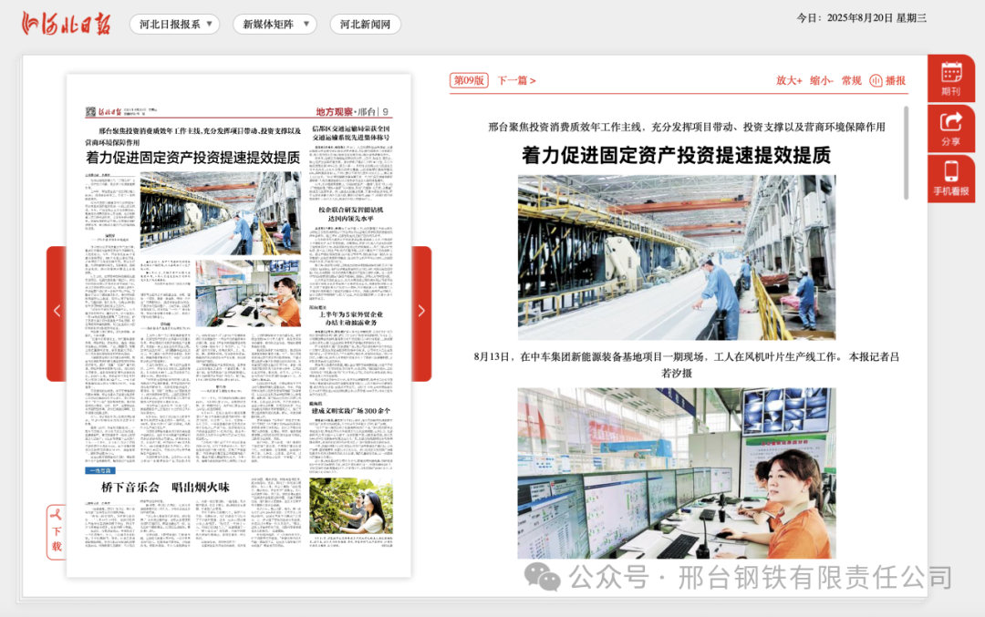 上半年,邢臺(tái)固定資產(chǎn)投資同比增長(zhǎng)16.6%,增速居全省第二,交出了一張亮眼成績(jī)單。這份成績(jī)背后藏著怎樣的發(fā)展密碼?邢臺(tái)市重點(diǎn)項(xiàng)目建設(shè)促進(jìn)中心副主任王斌說,今年,邢臺(tái)堅(jiān)持工業(yè)立市發(fā)展戰(zhàn)略,聚焦投資消費(fèi)質(zhì)效年工作主線,充分發(fā)揮重大項(xiàng)目的帶動(dòng)作用、工業(yè)投資的支撐作用、民間投資的拉動(dòng)作用以及營(yíng)商環(huán)境的保障作用,著力促進(jìn)固定資產(chǎn)投資提速提效提質(zhì)。